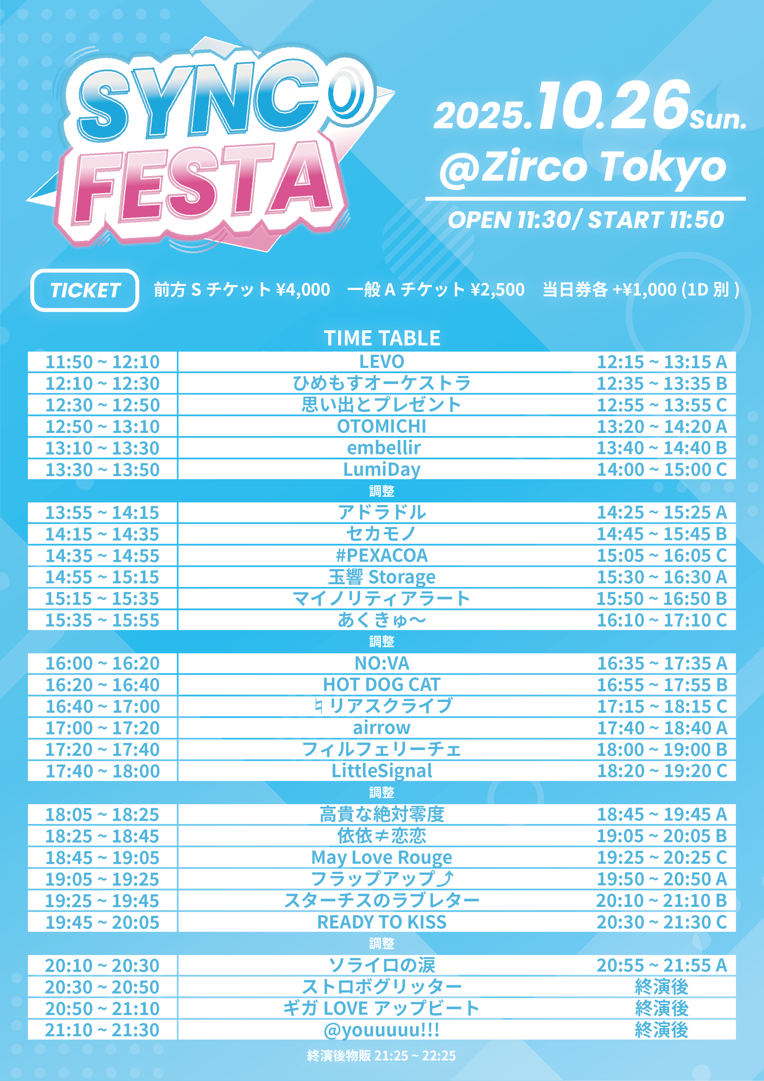 - 前方チケット¥4,000/一般チケット¥2,500-/当日券各+¥1,000 (1Drink代金¥700別途必要)