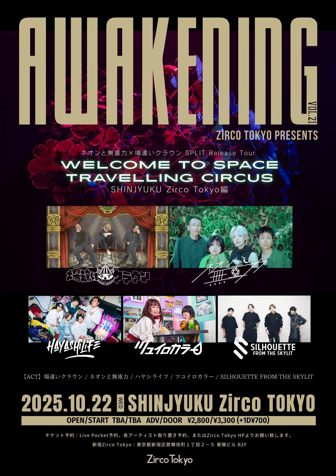 Zirco Tokyo presents. AWAKENING vol.21 ネオンと無重力×場違いクラウン SPLIT Release Tour Welcome to space travelling circus SHINJYUKU Zirco Tokyo編