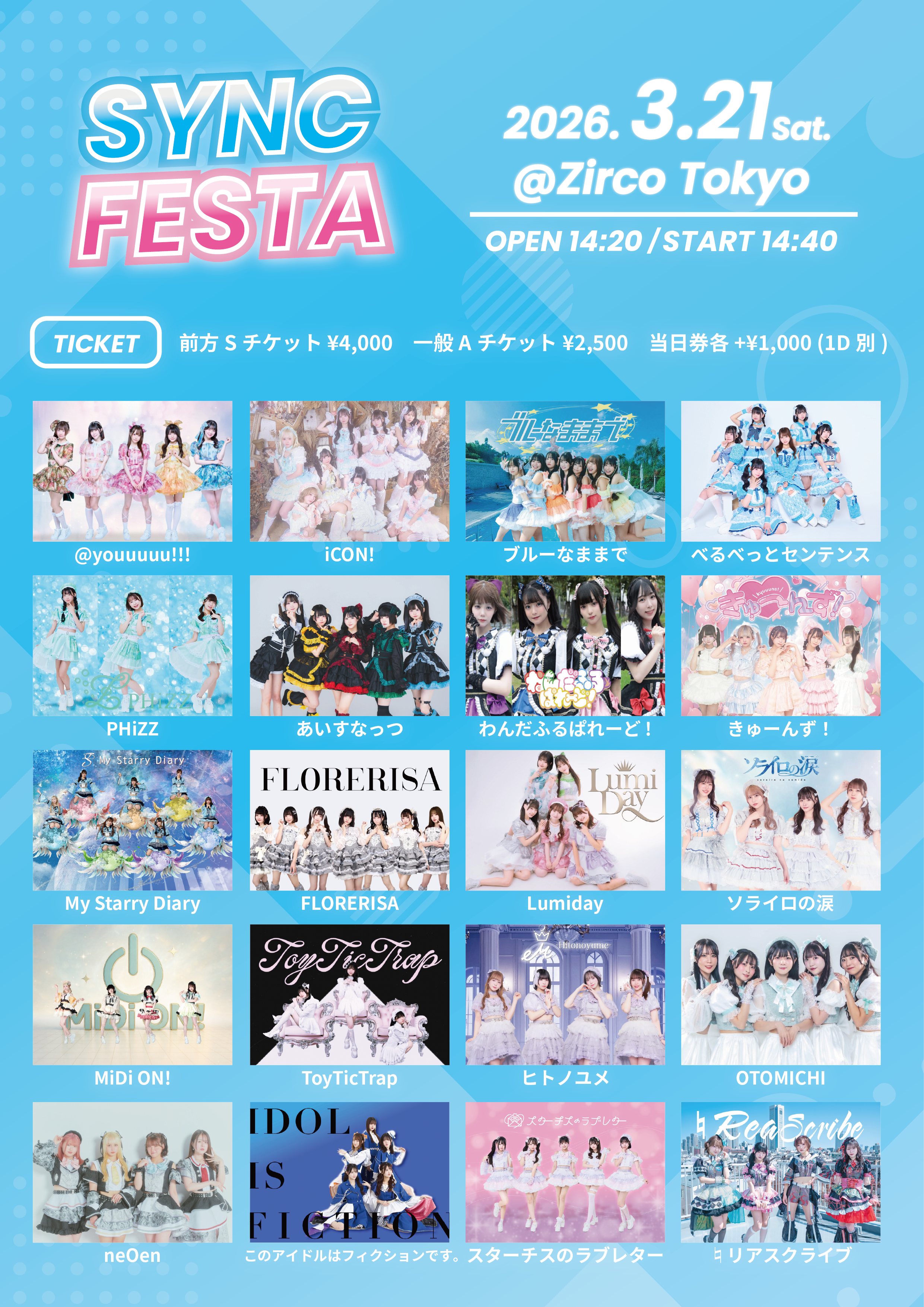 - neOen / このアイドルはフィクションです。 / べるべっとセンテンス / スターチスのラブレター / ♮リアスクライブ / iCON! / ブルーなままで / @youuuuu!!! / MiDi ON! / FLORERISA / LumiDay / わんだふるぱれーど! / PHiZZ / ToyTicTrap / ヒトノユメ / きゅーんず! / OTOMICHI / My Starry Diary / ソライロの涙 / あいすなっつ