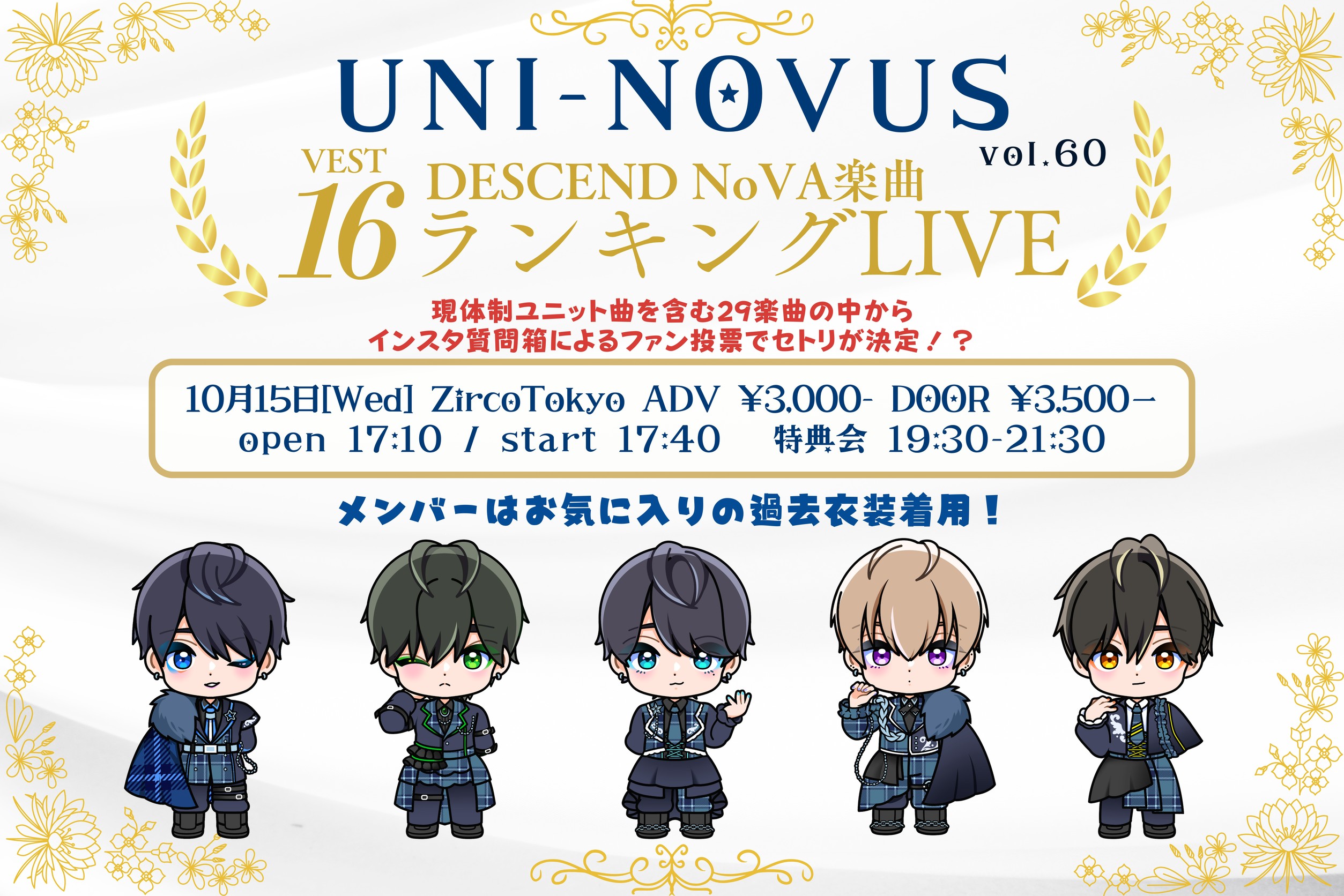 新宿歌舞伎町 Zirco Tokyo (ジルコトーキョー) スケジュール 2025.10.15(Wed) UNI-NOVUS vol.60 [ACT] DESCEND NoVA [OPEN/START] 17:10/17:40 [料金] ADV/DOOR ¥3,000/¥3,500- (1Drink代金¥700別途必要) (問)Zirco Tokyo 03-6278-9190 / info@zirco-tokyo.jp