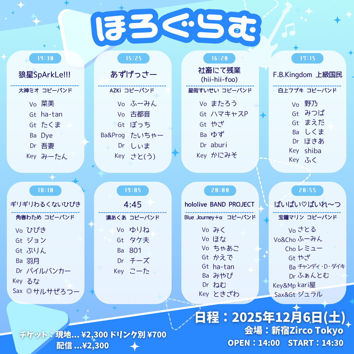 - 狼星SpArkLe!!!/あずげっさー/社畜にて残業(hii-hii-foo)//F.B.Kingdom 上級国民/ギリギリわるくないひびき/4:45/hololive BAND PROJECT/ぱいぱい♡ぱいれ〜つ