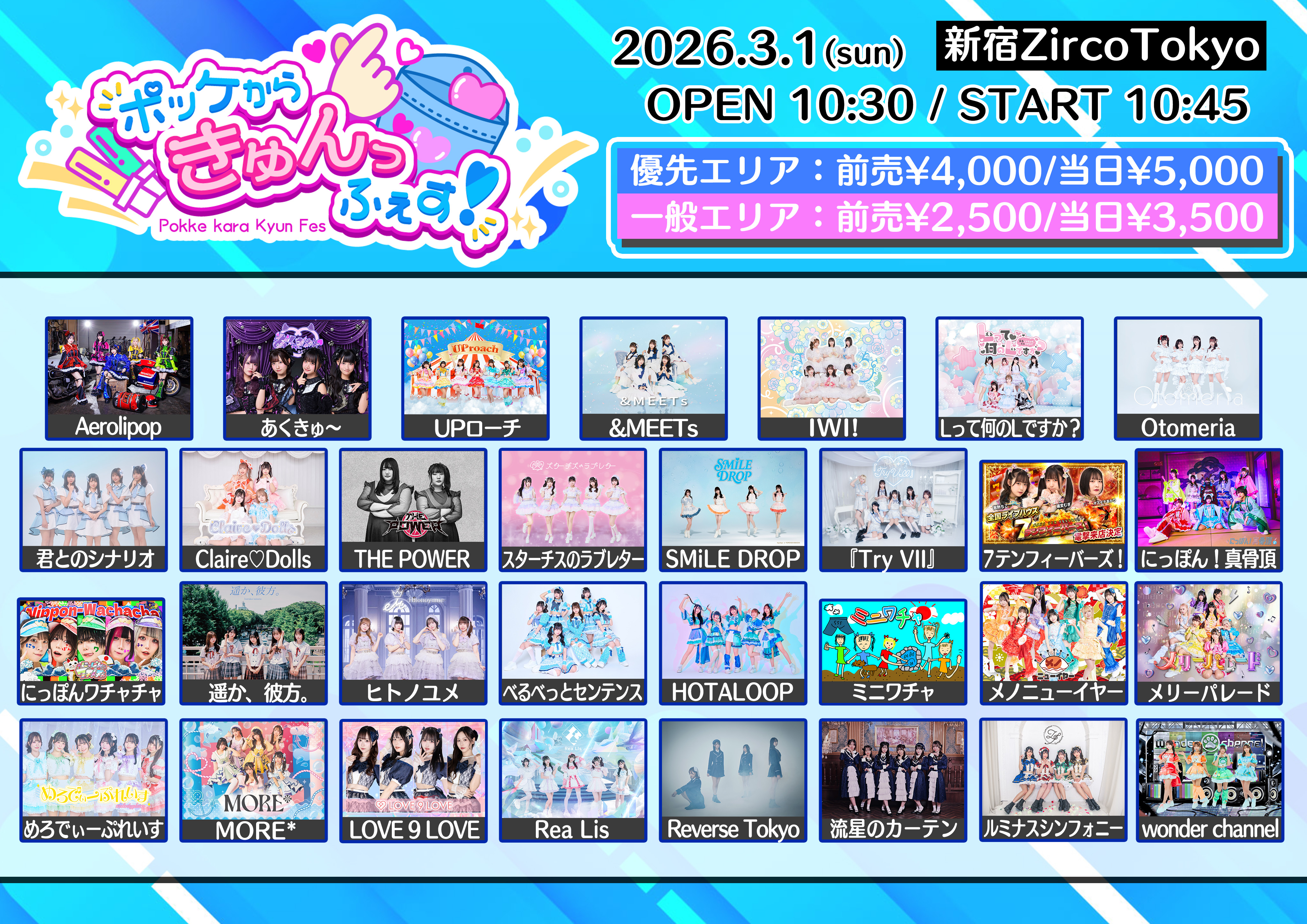 - Aerolipop/あくきゅ〜/UPローチ/&MEETs /IWI!/Lって何のLですか?/Otomeria/君とのシナリオ/Claire♡Dolls/THE POWER/スターチスのラブレター/SMiLE DROP//『Try VII』/7テンフィーバーズ!/にっぽん!真骨頂/にっぽんワチャチャ/遥か、彼方。/ヒトノユメ/べるべっとセンテンス/HOTALOOP/ミニワチャ/メノニューイヤー/メリーパレード/めろでぃーぷれいす/MORE*/LOVE 9 LOVE/Rea Lis/Reverse Tokyo/流星のカーテン/ルミナスシンフォニー/wonder channel
