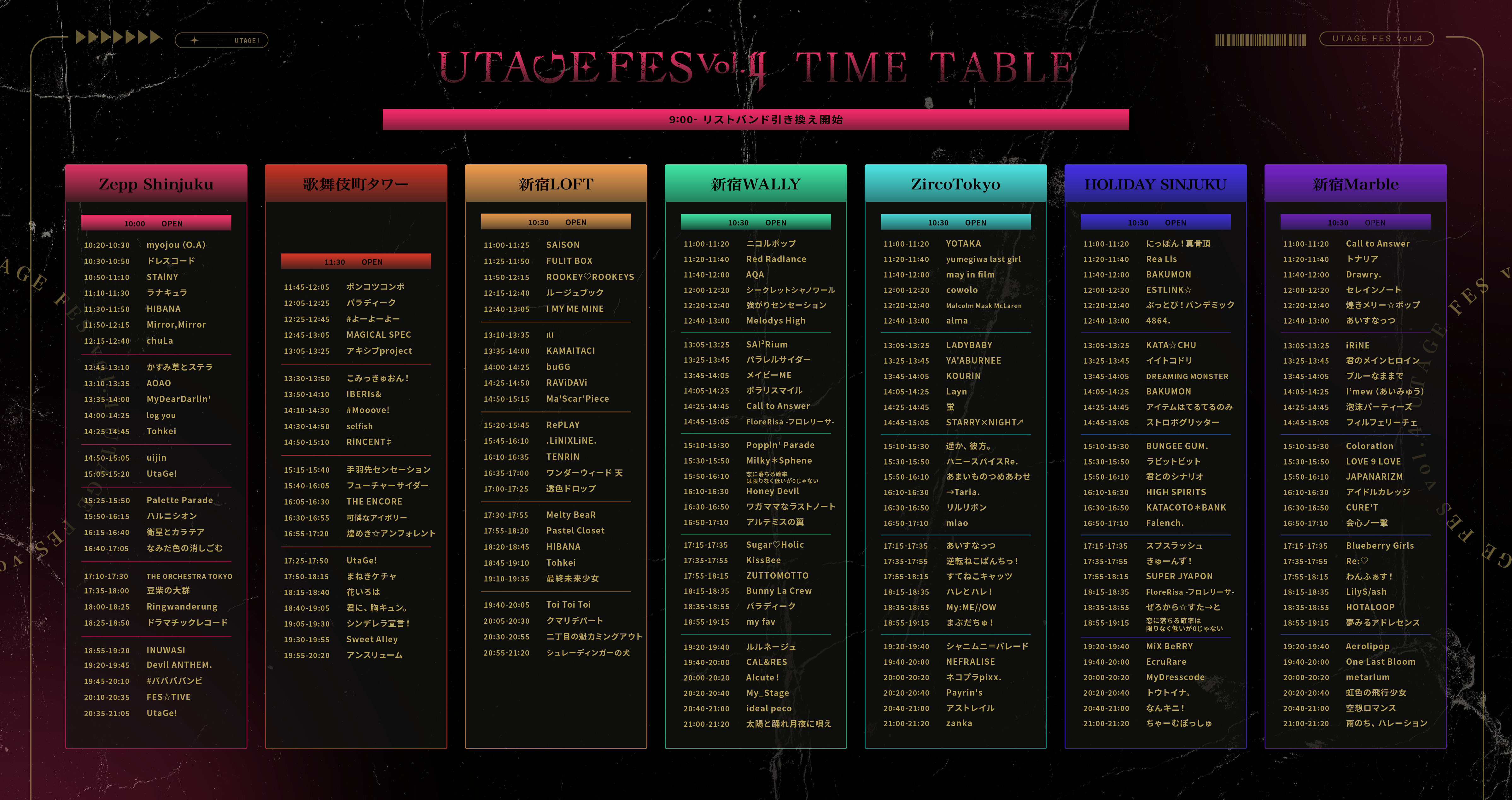 - 10:30/11:00 ※リストバンド交換9:00よりZepp Shinjukuにて