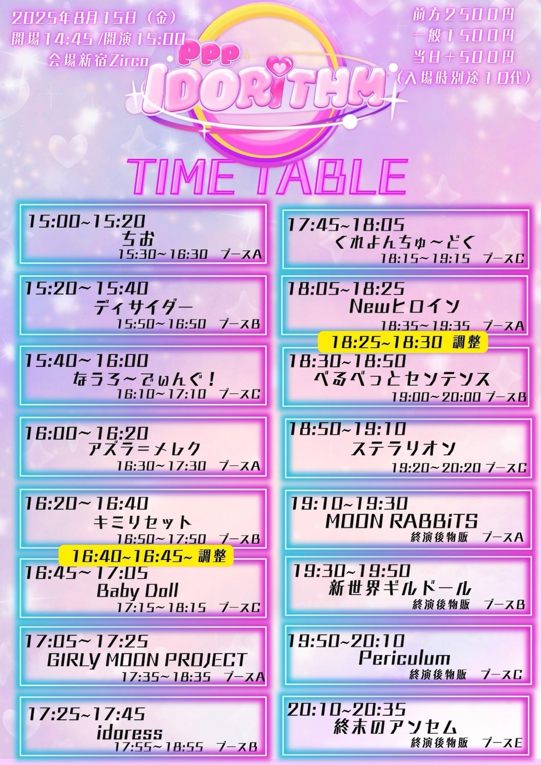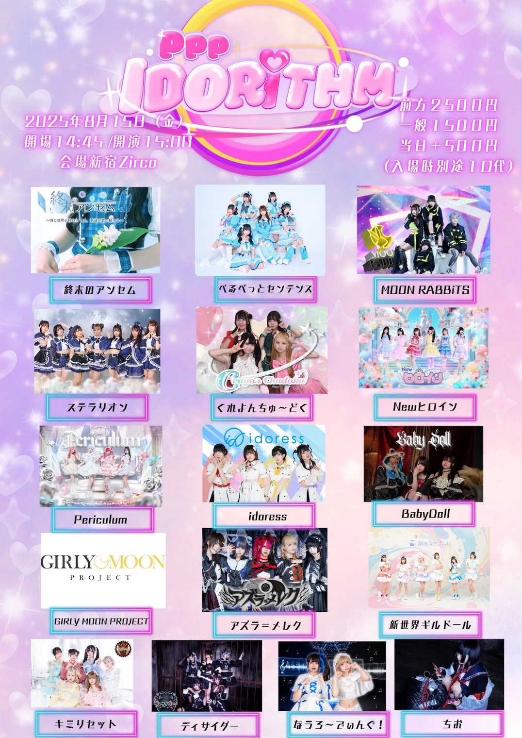 - 終末のアンセム / べるべっとセンテンス / MOON RABBiTS / ステラリオン / くれよんちゅ〜どく / Newヒロイン / periculum / idoress / BabyDoll / GIRLY MOON PROJECT / アズラ=メレク / キミリセット / ディサイダー / ちお / なうろ〜でぃんぐ! / 新世界ギルドール
