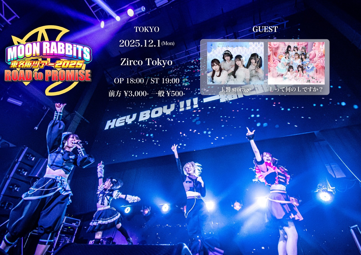 新宿歌舞伎町 Zirco Tokyo (ジルコトーキョー) スケジュール 2025.12.01(Mon) MOON RABBiTS 東名阪ツアー2025 ROAD to PROMiSE in 東京 [ACT] MOON RABBiTS , Lって何のLですか? , 玉響storage [OPEN/START] 18:00/19:00 [料金] 前方チケット ¥3,000 /一般チケット ¥500/当日券:各チケット代+¥500(1Drink代金¥700別途必要) (問)Zirco Tokyo 03-6278-9190 / info@zirco-tokyo.jp