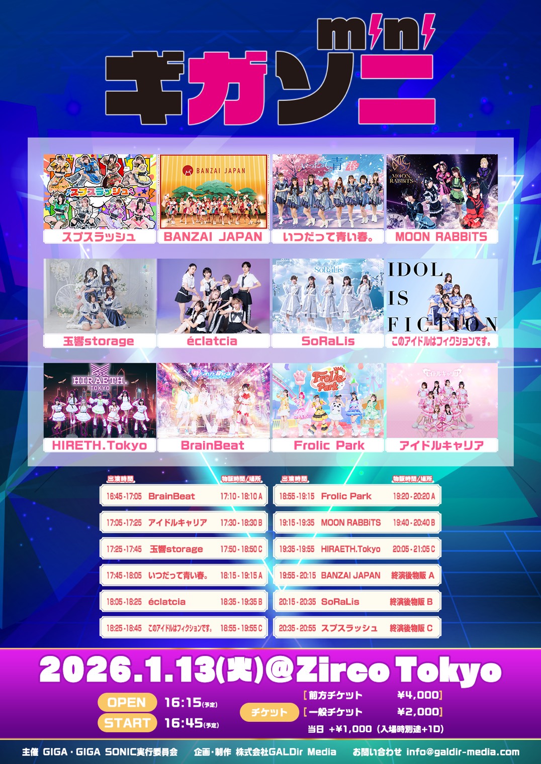 - スプスラッシュ / BANZAI JAPAN / いつだって青い春。/ MOON RABBiTS / 玉響storage / éclatcia / SoRaLis / このアイドルはフィクションです。/ HIRETH.Tokyo / BrainBeat / Frolic Park / アイドルキャリア